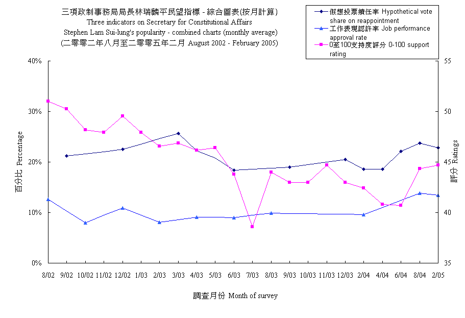 Three Indicators on Secretary for Constitutional Affairs Stephen Lam Sui-lung's Popularity - Combined Charts (monthly average)
